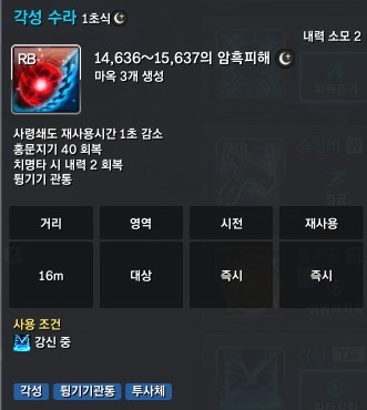 압도 상태시 수라의 사쇄쿨감이 1초 더 늘어납니다.