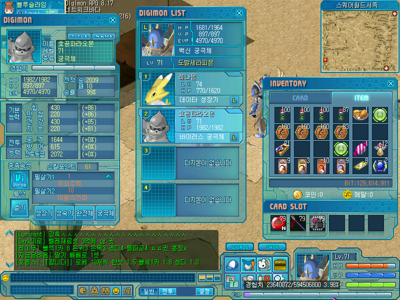 어우... 71렙까지 찍는데 토나옵니다. 그래도 세라피몬,메탈에테몬 둘 다 71렙 찍었습니다!