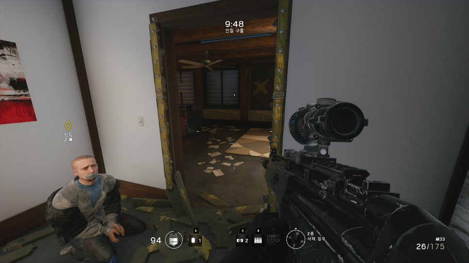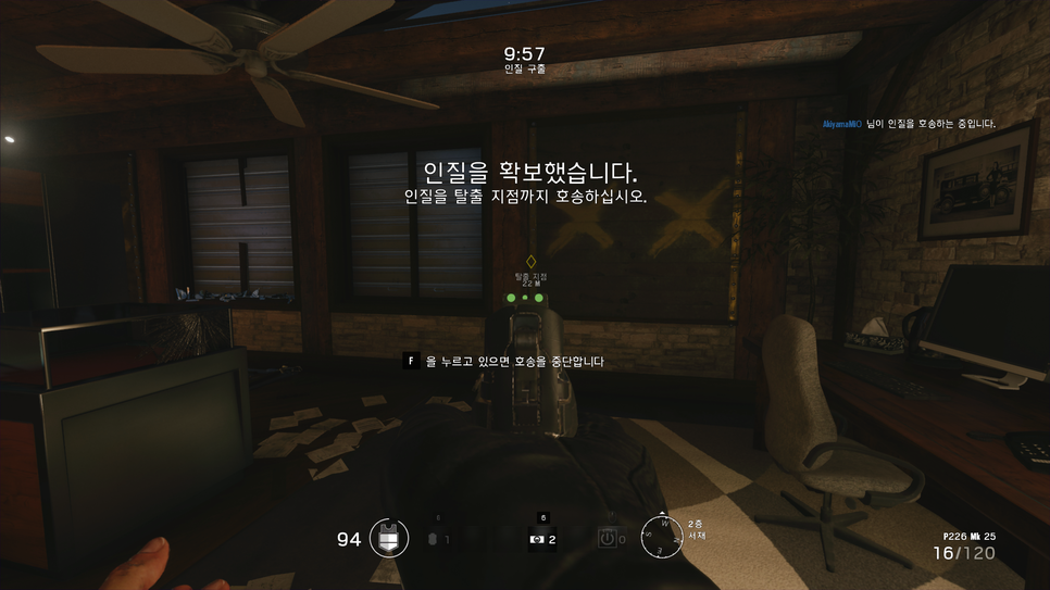 인질을 확보를 하셨다면 바로 이동하지 않고 바로 구석에 넣어두시고 알아서 들어오는 적들만 처치해주시면 됩니다. 인질 구출 지점은 게임시작하자마자 안나오지만 맵에는 플레어가 떨궈져 있기 때문에 그걸보면 인질 구출 지점을 확인할 수 있습니다.