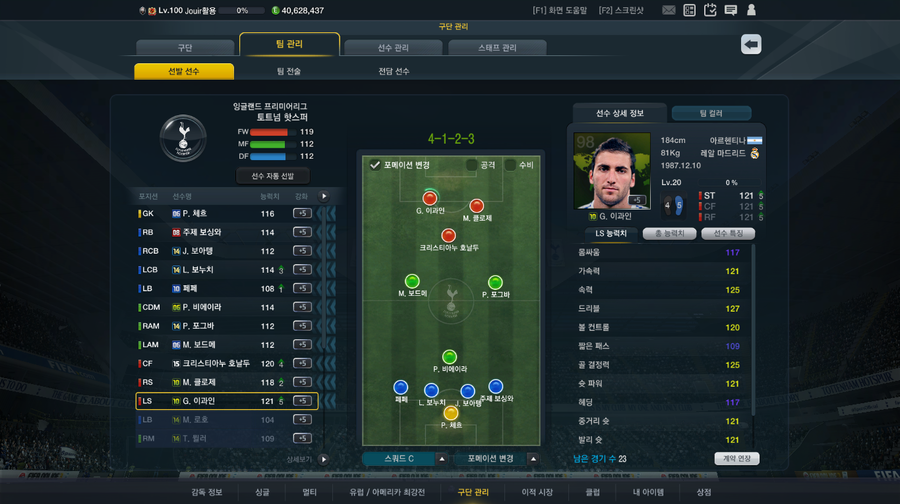 저는 개인기에는 약하다보니 침투형과 크로스 패스플레이 등으로 돌아가면서 사용중입니다.