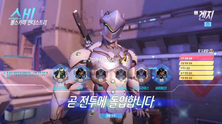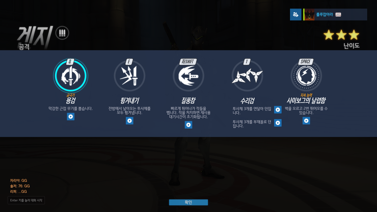 겐지는 공격력은 다른캐릭터에 비하면 매우 많이 좋습니다.