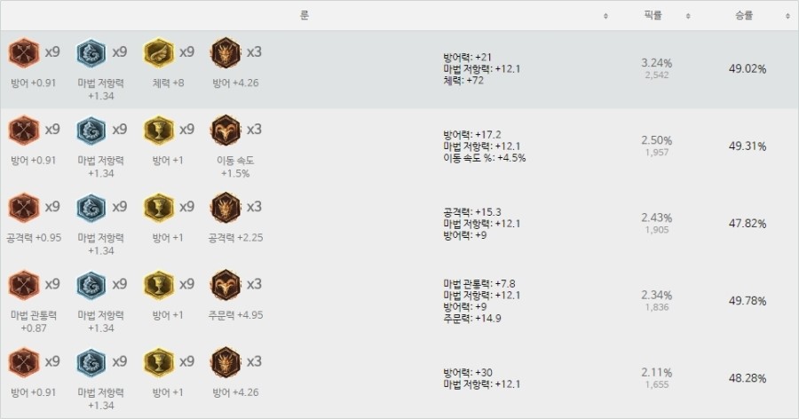 보시면 아시겟지만 픽률이 다 고만고만합니다 승률역시 그렇죠