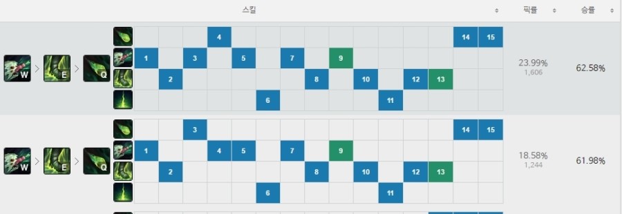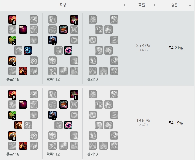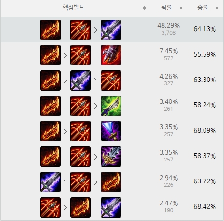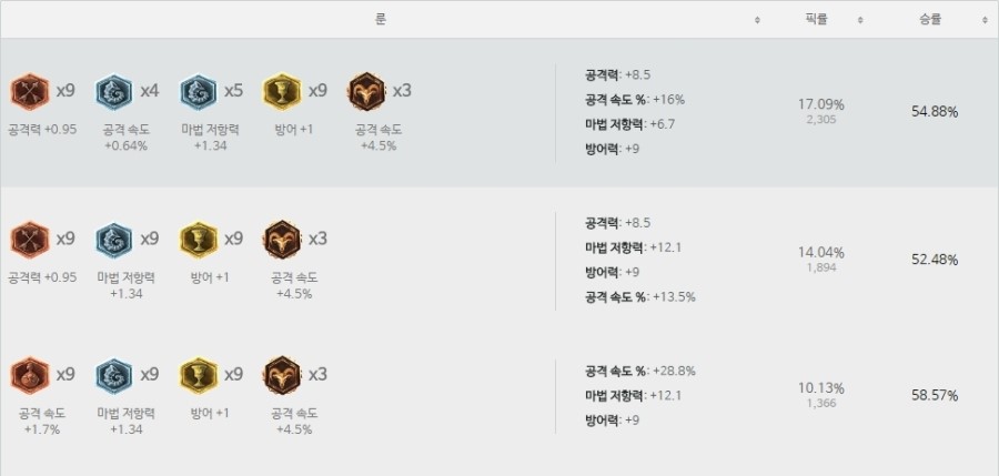 퍼렁룬과 빨강룬에서 공속을 더 챙기는 모습을 볼 수 있습니다