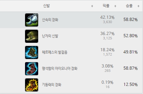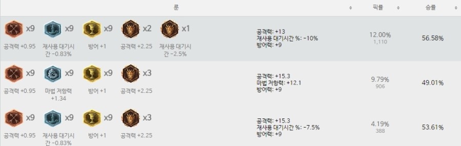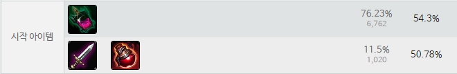 그 다음으로 픽률이 좋은 조합은 마저를 가져가고 쿨감은 하나도 안챙기는