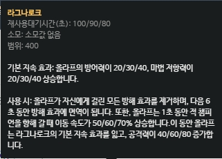 요건 궁극기인데 보시면 방어력과 마저가 기본적으로 상승하고