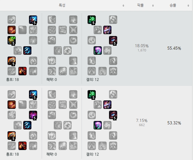 크게 다른점 없이 메타대로 흉포 18 결의 12 찍으시면 무난할듯요