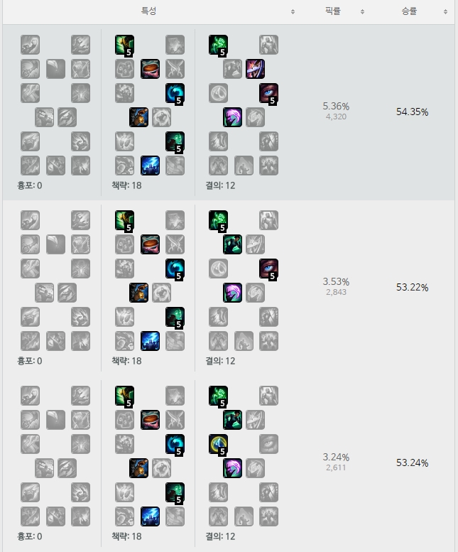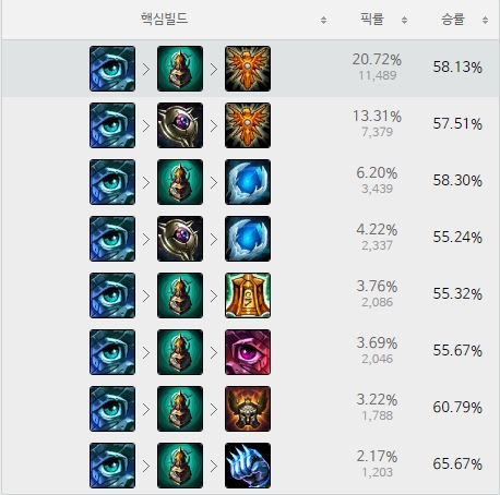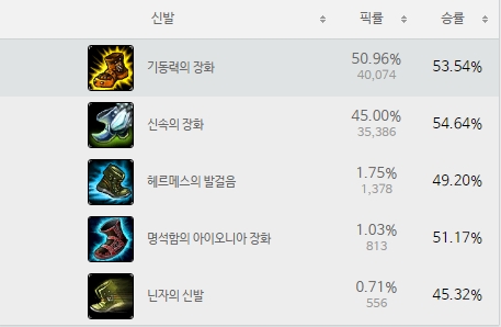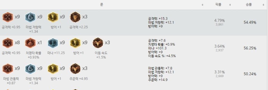 왕룬에 공격력을 박은게 제일 픽률이 좋네요