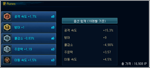파랑은 쿨감 +주문력으로 스킬링과 딜량!