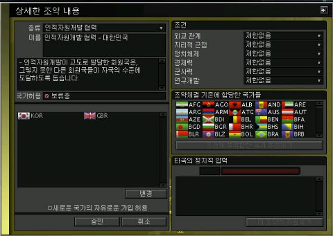 상대국가와 우호도가20이넘어야하고