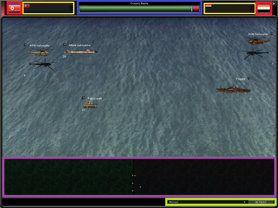 이 전투의 주체를 보여줍니다. 참전국이 20개, 30개가 되도 전투를 시작한 쪽과 가장 먼저 전투를 당한 쪽이 표시됩니다.