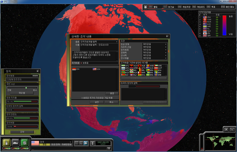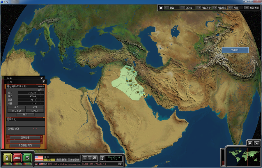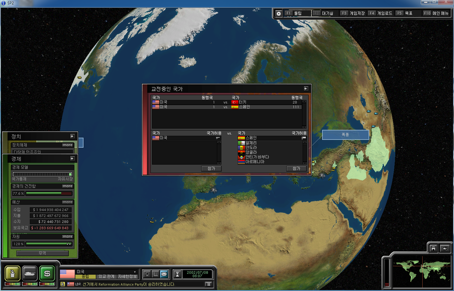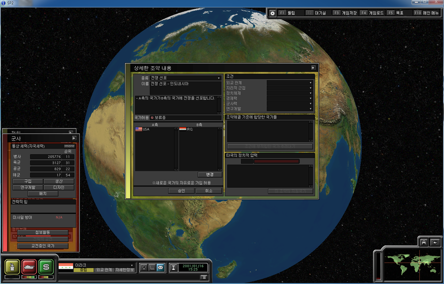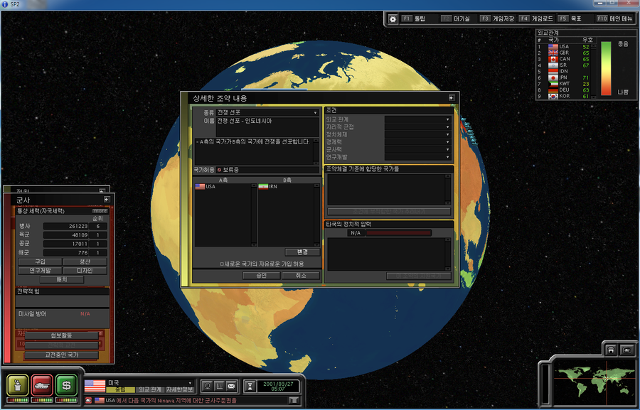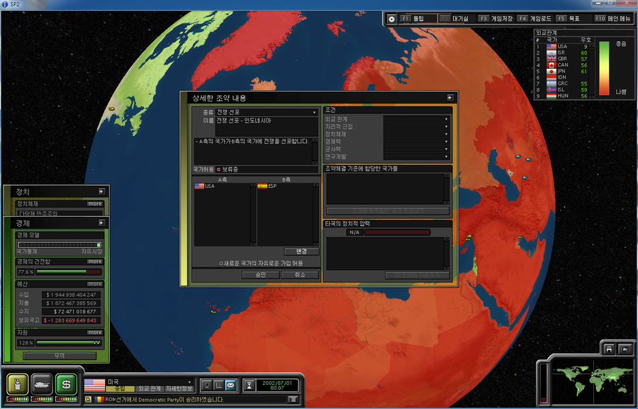 하는 방법은 조약 내용에서 오른쪽 아래 '변경' 버튼을 눌러 A측을 미국으로, B측을 이라크로 만들면 됩니다.