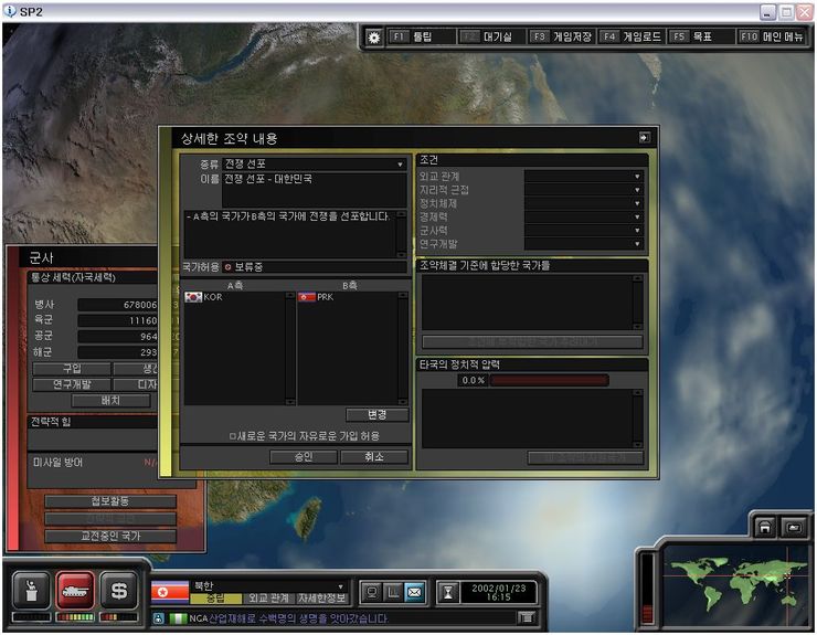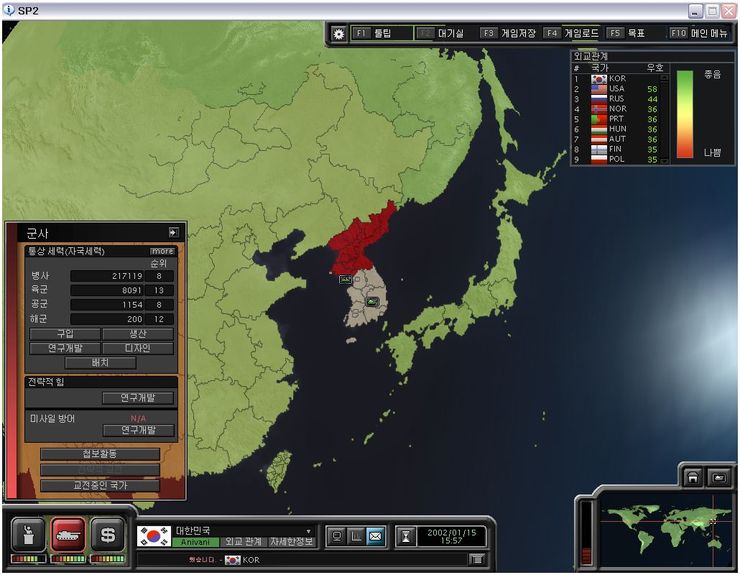 슈퍼파워2 공략 한국으로 북한 통일하기