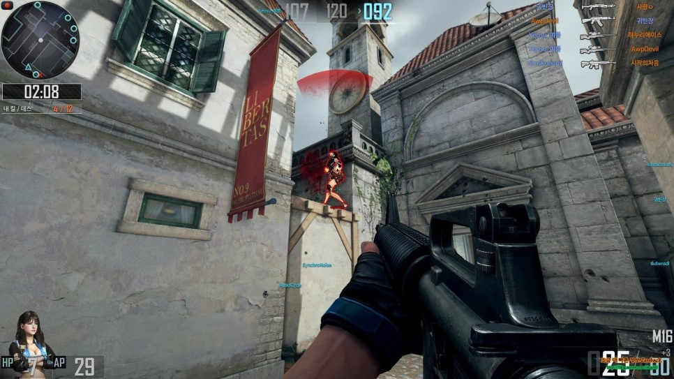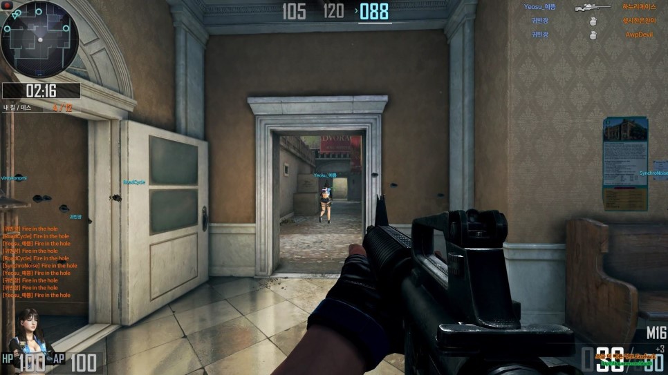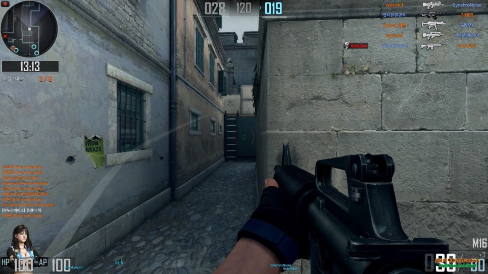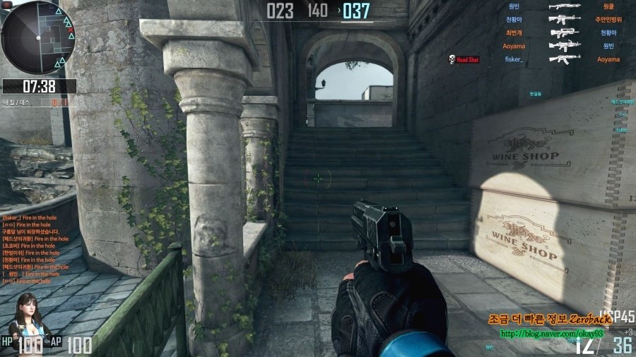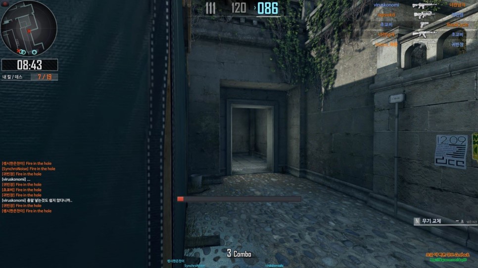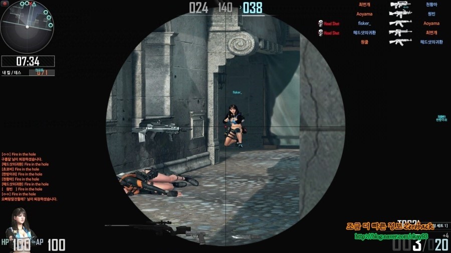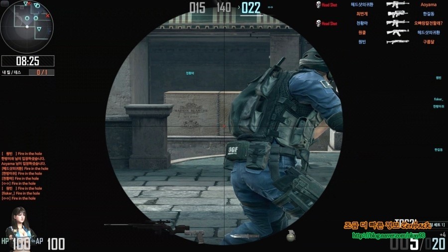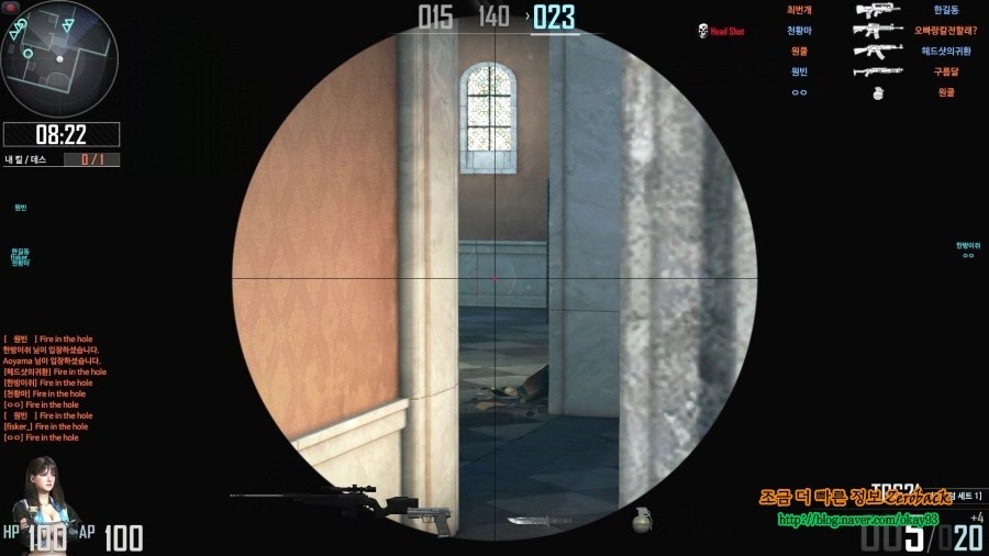 구석에서 숨어있다가 오는 걸 보고 바로 헤드샷을