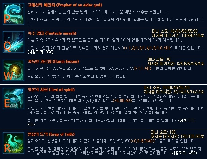 일라오이는 스킬 메커니즘이 꽤 복잡하기 때문에 약간의 집중(?)을 필요로 하는데