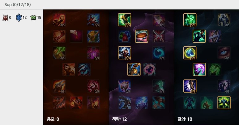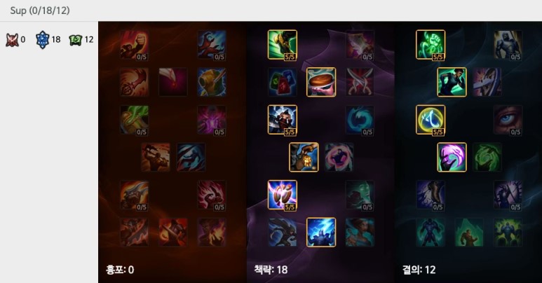 좀 더 딜러로서 활약하고 싶다면 책략에 18포인트를 투자하는 것도 가능하다. 기본적인 틀에서 벗어나지 않는다면 룬과 특성은 개인 취향을 많이 타니까.