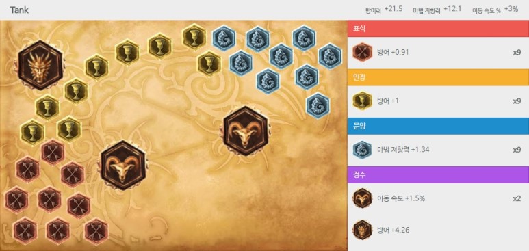 약간의 딜 손실을 감안하더라도 단단함을 추구한다면 위처럼 표식에 방어력을 쓰고 정수에도 방어력을 1~3개 써주면 충분.