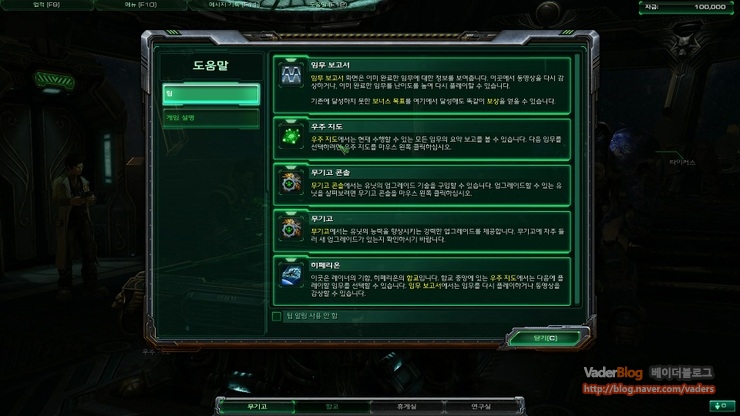 히페리온 함교는 가운데 아래 메뉴를 선택하여