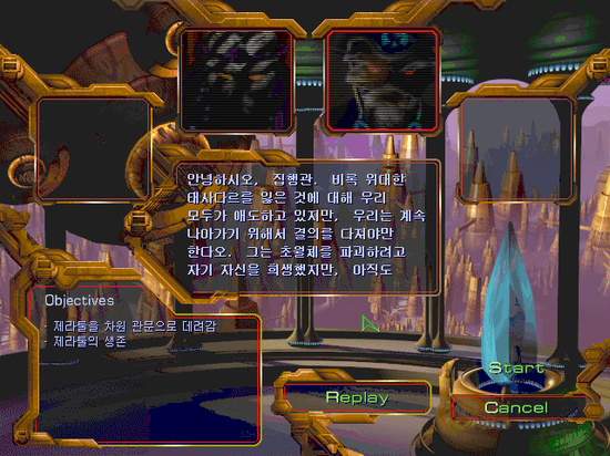 제라툴 : 레이너 사령관. 언제나 당신의 도움은 고마워 하고있소. 당신이 우리와 함께한다면 영광일 것이오.