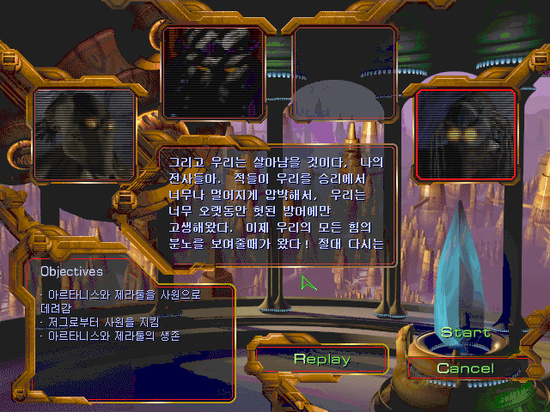 에너지를 사용할 것이고, 저그로부터 이 세계를 정화할 것이다! 이제 가라, 나의 자식들아. 그리고
