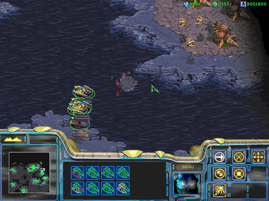 10시~2시까지 걸쳐서 사원 주위의 대부분의 저그는 물 건너편에 있습니다.