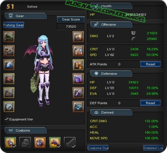 SPD에 투자하기보다는 크리티컬과 이와 연계되는 스킬에 투자를 해본 모습입니다.