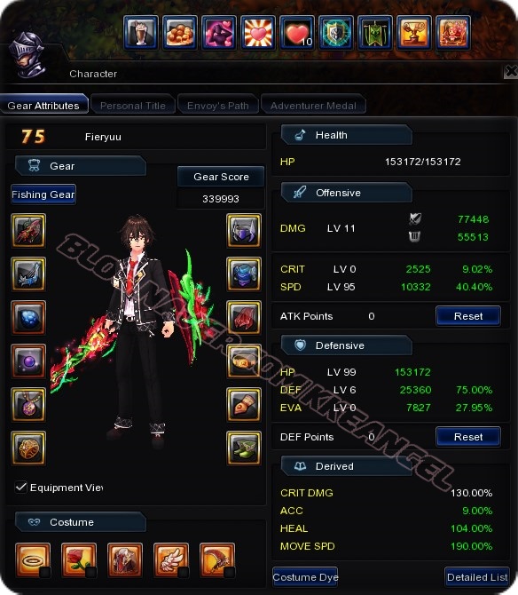 3위 아래 소장파. 쿨타임(속도) 약 40% & 나머지 데미지 / 회피 95% 빌드
