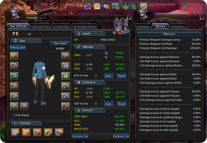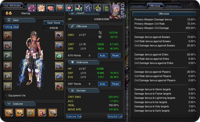 이 외에도 다른 스텟을 올린분이 있었는데 그분은 크리티컬 확률이 20퍼센트대였던것으로 기억.