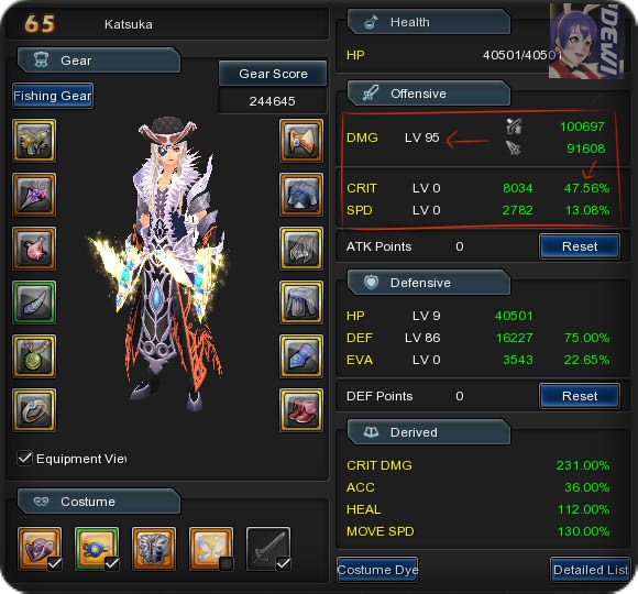 위의 경우는 부족한 크리티컬 확률 및 데미지를 아이템으로 커버한 형태일듯하다.