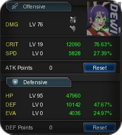 공격 스텟 : 데미지와 크리티컬을 4 : 1 비율로 놓거나 1 : 4 비율로 놓음 / 방어 스텟 : 방어 어느정도 올리고 나서 체력