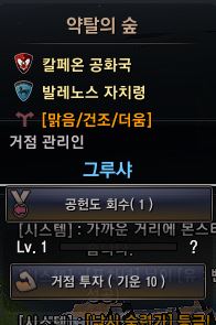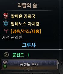 미니맵에 원하는 거점을 클릭후 공헌도 투자를 누르면