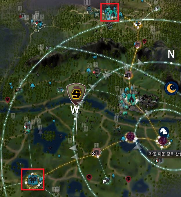 거점이 연결되면 미니맵에서 주황색으로 라인이 표시됩니다