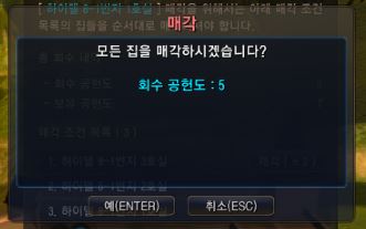 모든 집을 매각 할수있고 회수되는 공헌도도 알 수 있습니다