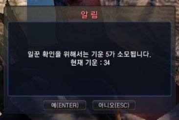 일꾼 계약을 누르면 위처럼 기운5를 소모하여 랜덤으로 일꾼을 뽑는 방식입니다