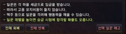 아래를 보면 일꾼 전체 회복, 전체 반복이 있습니다