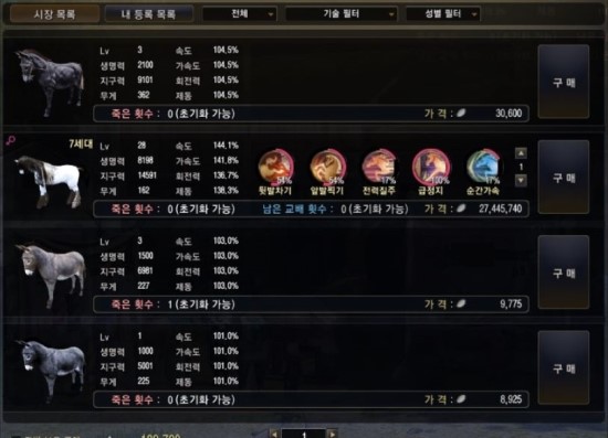 2. 마시장에서 유저들이 올린 말을 구입한다