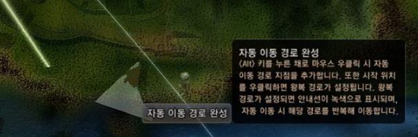 원하는 지점을 우클릭으로 찍으면 자신의 캐릭터 위치 밑에 자동 이동 경로 완성 이라는 툴팁이 생깁니다