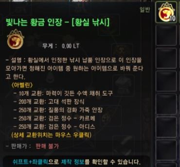 그리고 황실 납품을 하면 빛나는 황금 인장을 얻는데요