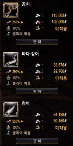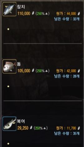 황실납품은 시세하락이 적용되지않습니다 게다가 모든 어류들을 250%의 가격에 납품할수 있습니다