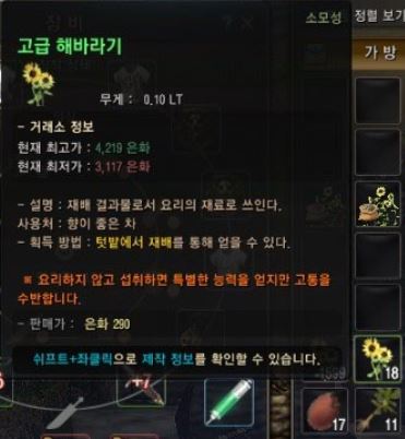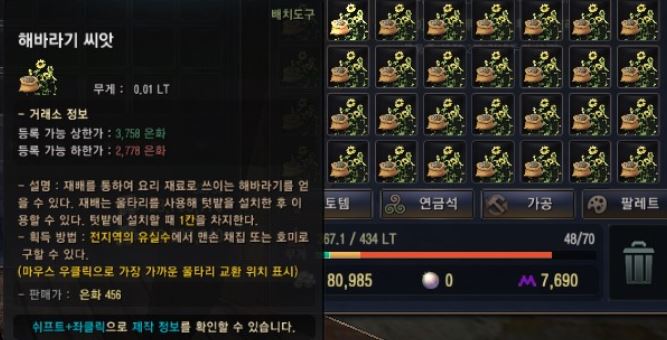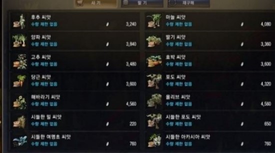 씨앗은 경매장에서 구매하거나 NPC에게 구매가 가능하다