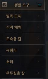 벌목, 나무수액, 동물피, 동물가죽, 동물고기, 광석캐기 등등 다양한 채집을 하면