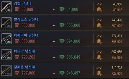 다양한 낚싯대가 있는데 자동낚시를 할땐 발레노스 낚싯대를