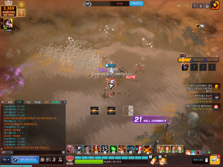 해방은 일반 사냥터와는 다르게 여러 효과들이 있습니다.