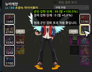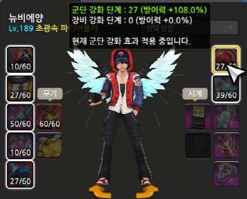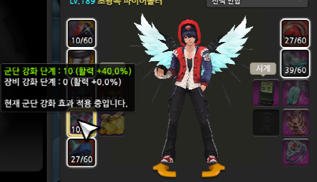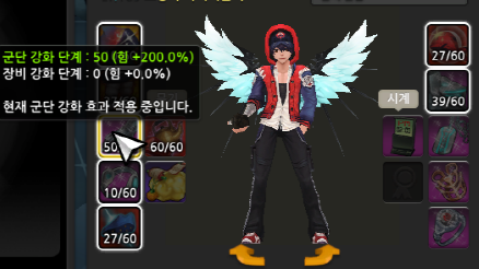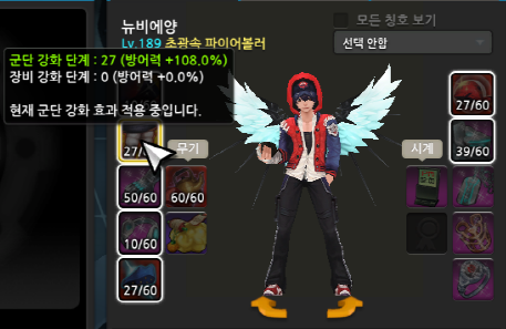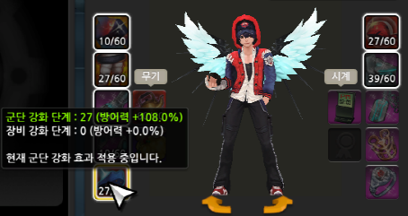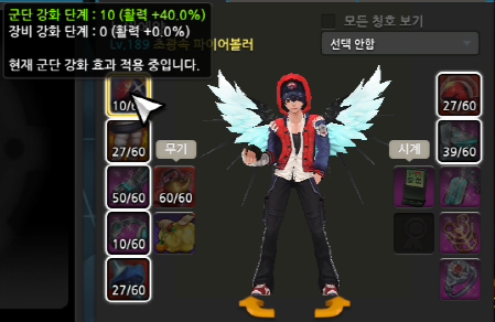 장비강화 : 레벨 상관없이 "강화한 장비만" 적용