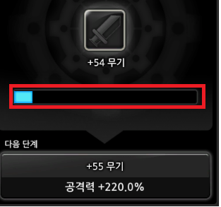 강화를하면 단계별 상관없이 10% ~ 100%의 확률로 푸른 게이지가 차오르게 됩니다.