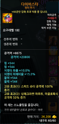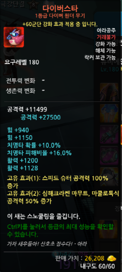 다이빙 시키면 장비의 능력치가 상승하게됩니다