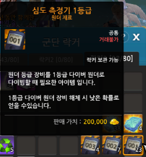 심도 측정기는 일일퀘스트 X의 의뢰 보상에서 얻는 미스터리 상자에서 열면 얻거나