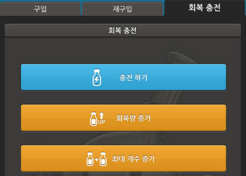 회복제 충전기를 누르면 3가지 종류가 있습니다