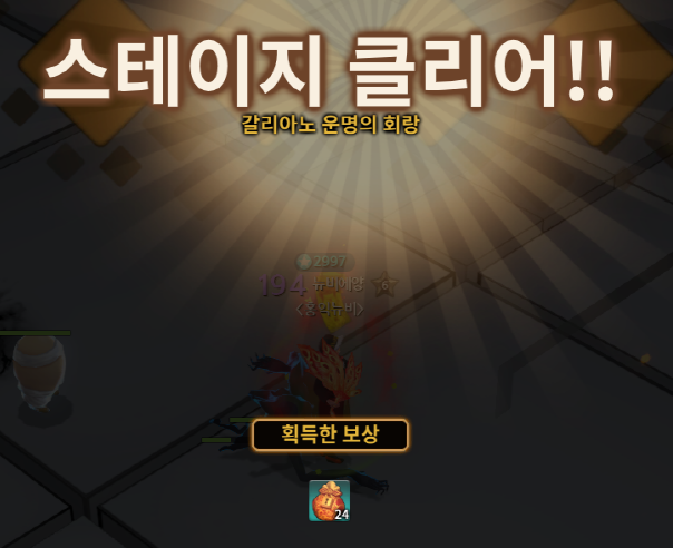 스테이지를 클리어하면 해당 던전에서 얻은 보상을 알려주며 끝이납니다