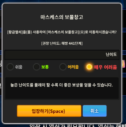 어려움난이도는 291단계부터 매우 어려움은 441단계부터 가능합니다