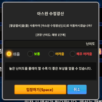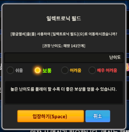 쉬움은 1단계부터 보통은 141단계부터 가능합니다